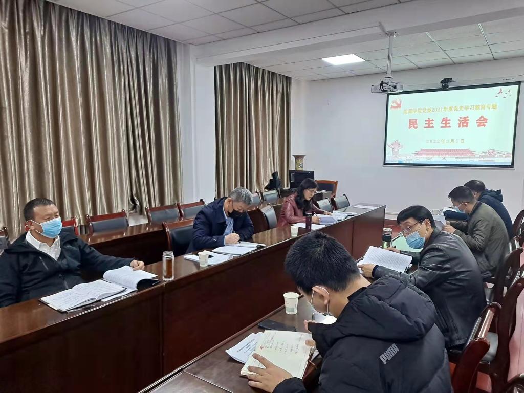 3月7日,我院在雁塔校区学院会议召开2021年度党史学习教育专题民主生活会,校党委副书记、校长、我院联系校领导来兴平教授出席并讲话,校纪检监察室主任列席督导、我院党委全体处级领导人员参加民主生活会,会议由院党委负责人主持。