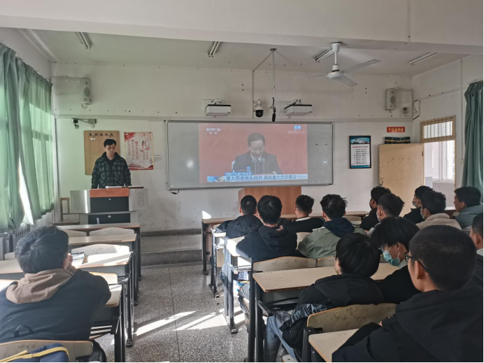 本科生党员和部分教师在骊山校园学院会议室收看新闻发布会