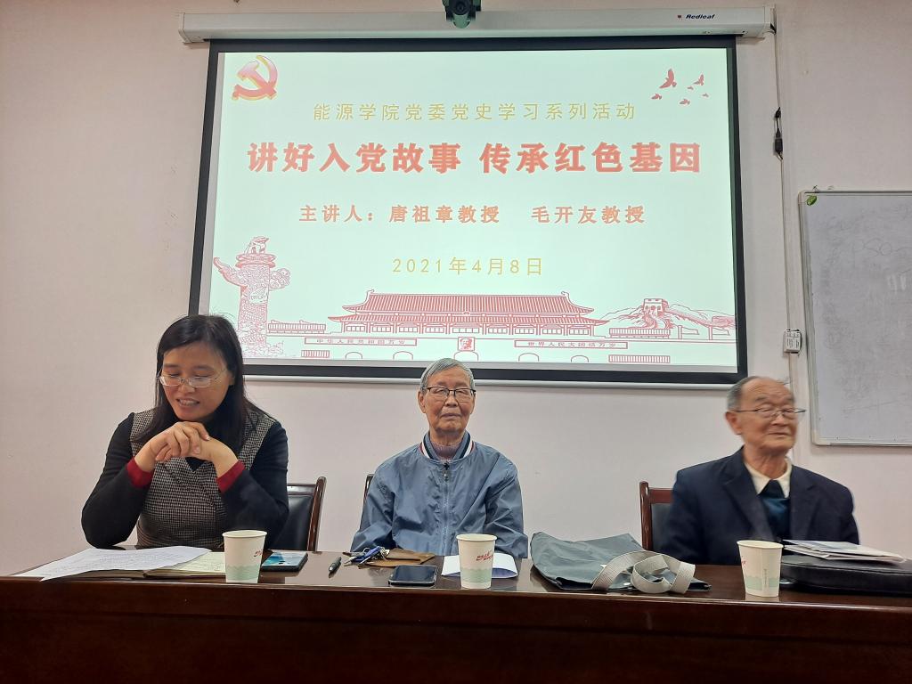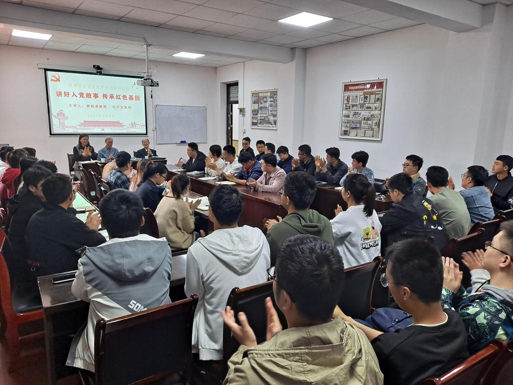 4月8日,我院在雁塔校区学院会议室举办“讲好入党故事,传承红色基因”老党员讲党史主题报告会。退休老党员唐祖章、毛开友两位教授应邀为我院全体研究生党员做报告,报告会由院党委书记陈吉兰主持。