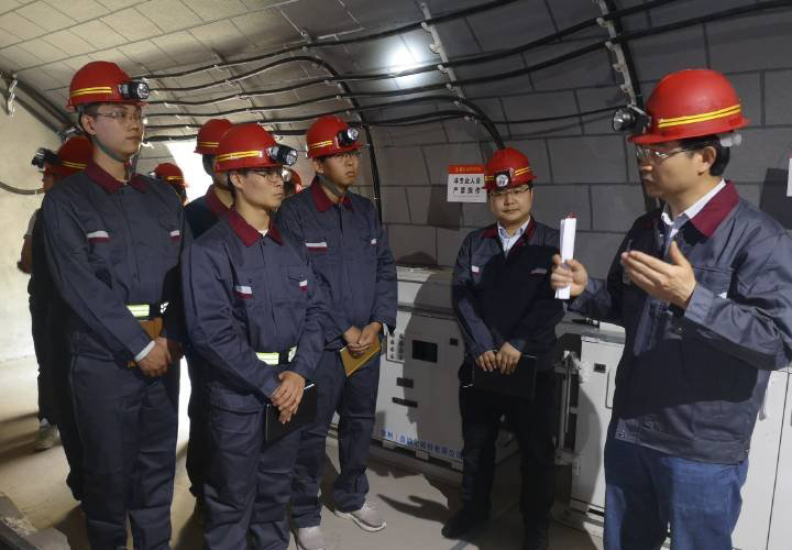 会后,黄庆享带领全体学生走进煤炭主题专业综合实验实训中心,现场讲授煤炭开采专业知识。