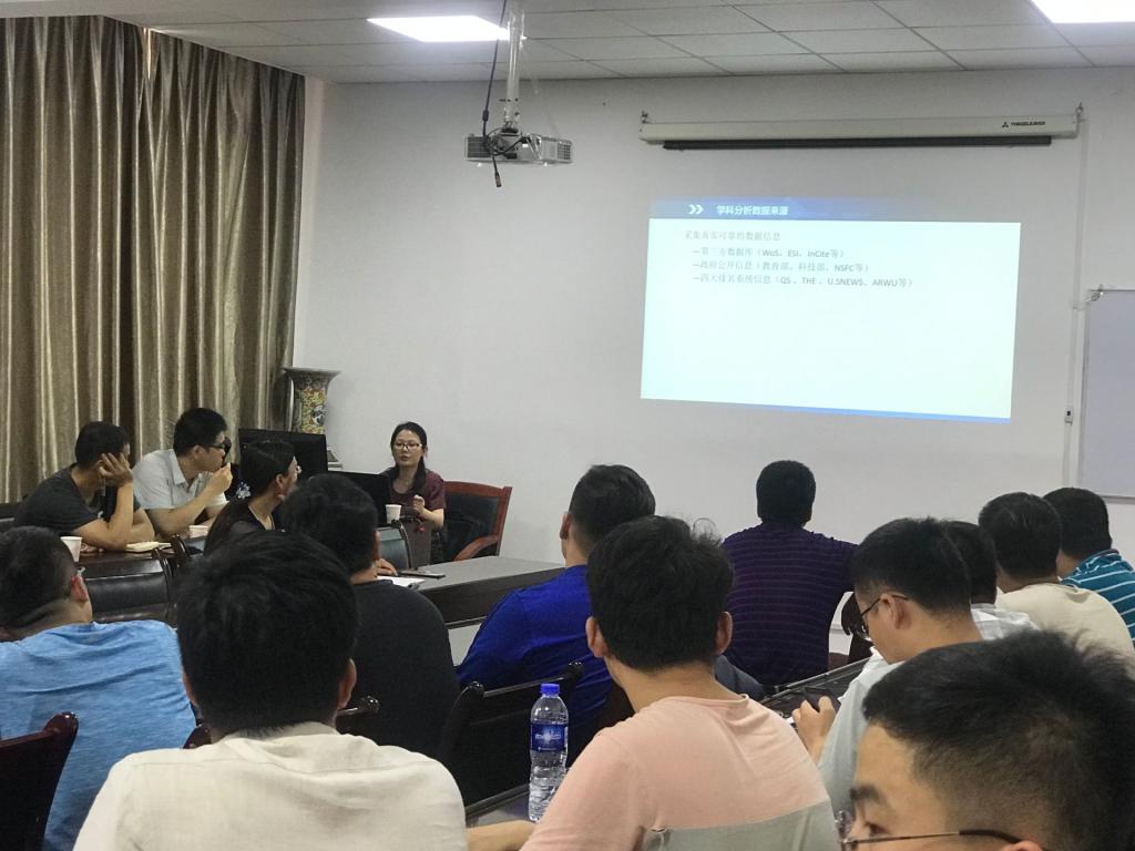 沈思老师通过对一流学科评选指标的分析,引出ESI与学科建设、科研人员的关系,分析我校成果现状,并从选题、研究热点、国际合作、如何提高学术影响力、投稿指南、论文写作注意事项等方面进行了详尽的介绍。