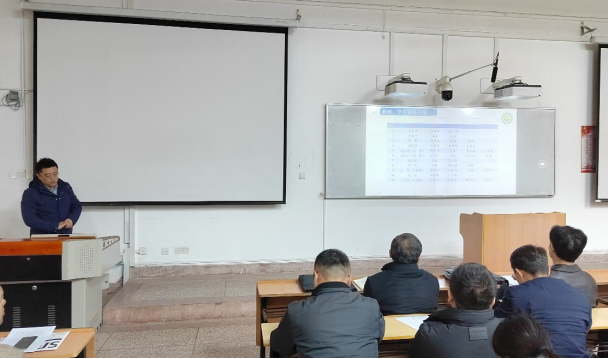 采矿工程系党支部书记郭卫彬副教授介绍了毕业实习和毕业设计分组原则以及最终安排结果。此次参加毕业实习及设计学生130人、指导教师51人,通过师生互选,共分为45个小组。