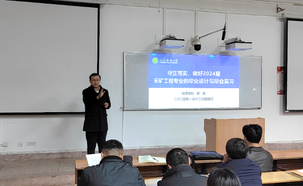 为进一步做好毕业实习准备工作,全面落实学校《关于做好2024届本科毕业生毕业设计(论文)工作的通知》相关要求,能源学院采矿工程系于2024年1月12日下午在骊山校园3教208教室隆重召开2024届毕业实习动员会暨毕业设计指导教师见面会。能源学院副院长丁自伟教授、副院长解盘石教授、校教学督导组专家贠东风教授、辅导员周哲豪、采矿工程专业全体指导教师及全体130名本科毕业生参加会议。会议由采矿工程系主任王红伟教授主持。会议由毕业实习及毕业设计总体安排、师生双选分组安排、毕业实习要求及任务、毕业设计要求及任务、实践教学督导、总结等6个部分组成。