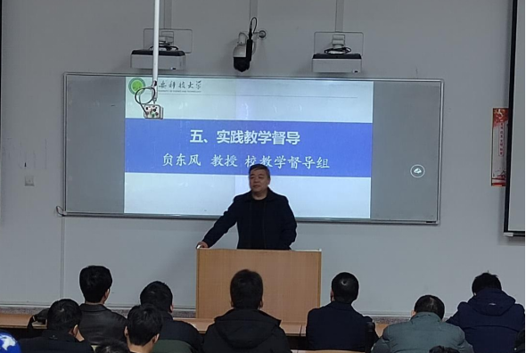 校教学督导组专家贠东风教授开展实践教学督导工作,贠老师要求学生在毕业设计过程中要多与指导教师沟通交流,多提问题。他强调了遵守纪律和严于律己的重要性,并将校友箴言带给学生,希望大家通过毕业设计这一活动提升自身知识综合运用能力。
