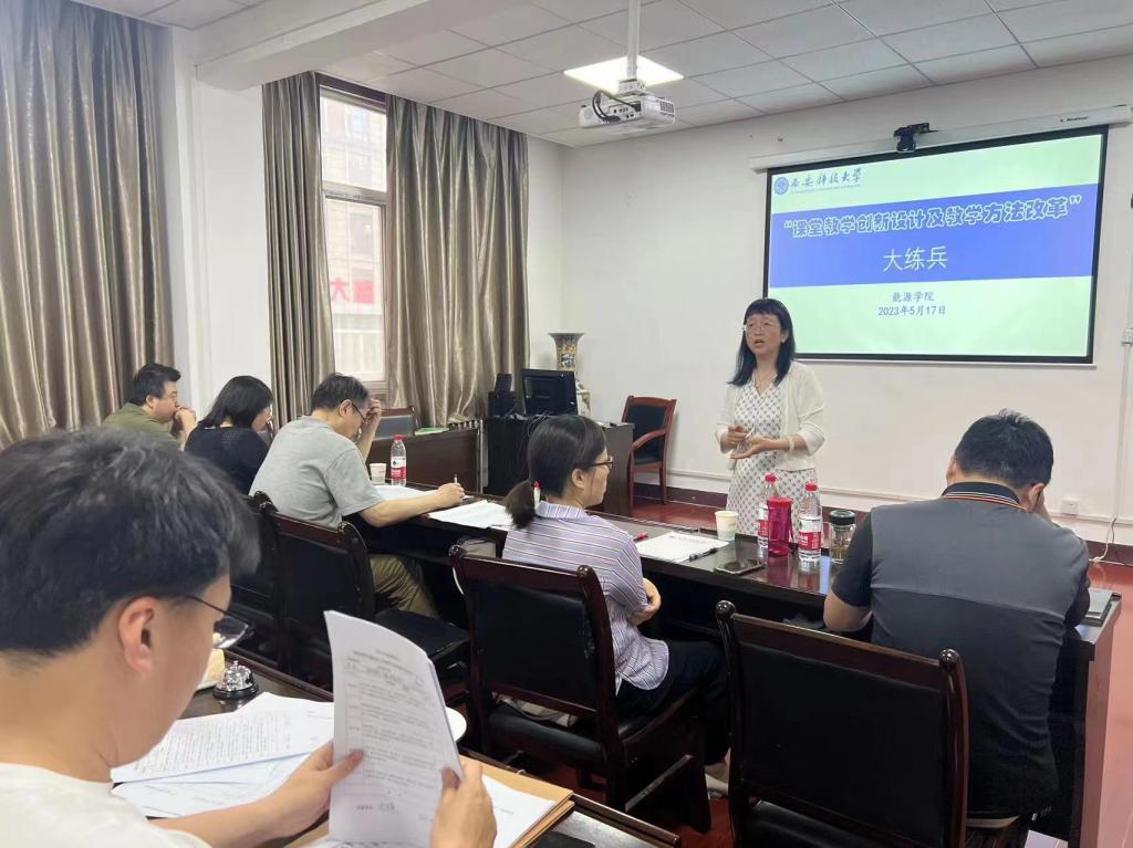 为进一步推进审核评估自评改进工作及迎接专家考察准备,锤炼教师教学技能,以赛促教,提升课堂教学质量,5月17日下午,能源学院在雁塔校区学院楼309、310会议室举办2023年“教学创新设计及教学方法改革大练兵”活动,我院党委书记陈吉兰、副院长朱明、丁自伟、省级教学名师刘金瑄教授、刘向荣教授;学校督导专家贠东风教授、能源学院姬长发教授、吕文玉教授及各系部主任、各类教学竞赛获奖教师担任评审专家,本学期14-16周有教学任务的全体专任教师、部分青年教师共计43人到场进行了观摩学习。