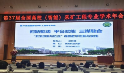 采矿年会期间,赵兵朝教授作了题为《问题驱动、平台赋能、三煤融合,“开采损害与防治”课程教学创新与实践》的主题报告,探讨了一流课程教学创新方法和经验,得到了与会专家和学者的高度评价。研究生林伟典、韩志成、冯立等在第六届矿业工程领域研究生论坛上分别作了题为“基于倾角效应的大倾角煤层采动裂隙演化定量表征”“分布式光纤传感技术在回采巷道底板松动圈监测中的应用”“房式采空区矸石充填作用下遗留煤柱长期稳定性分析”等学术报告,分享了自己的研究成果,拓宽了学术视野,展现了学术风采。青年教师王伟、姬松涛参加讲课比赛分别荣获一等奖和二等奖。学生实践作品分别荣获一等奖3项、二等奖12项、三等奖13项,并被评为最佳组织奖单位。