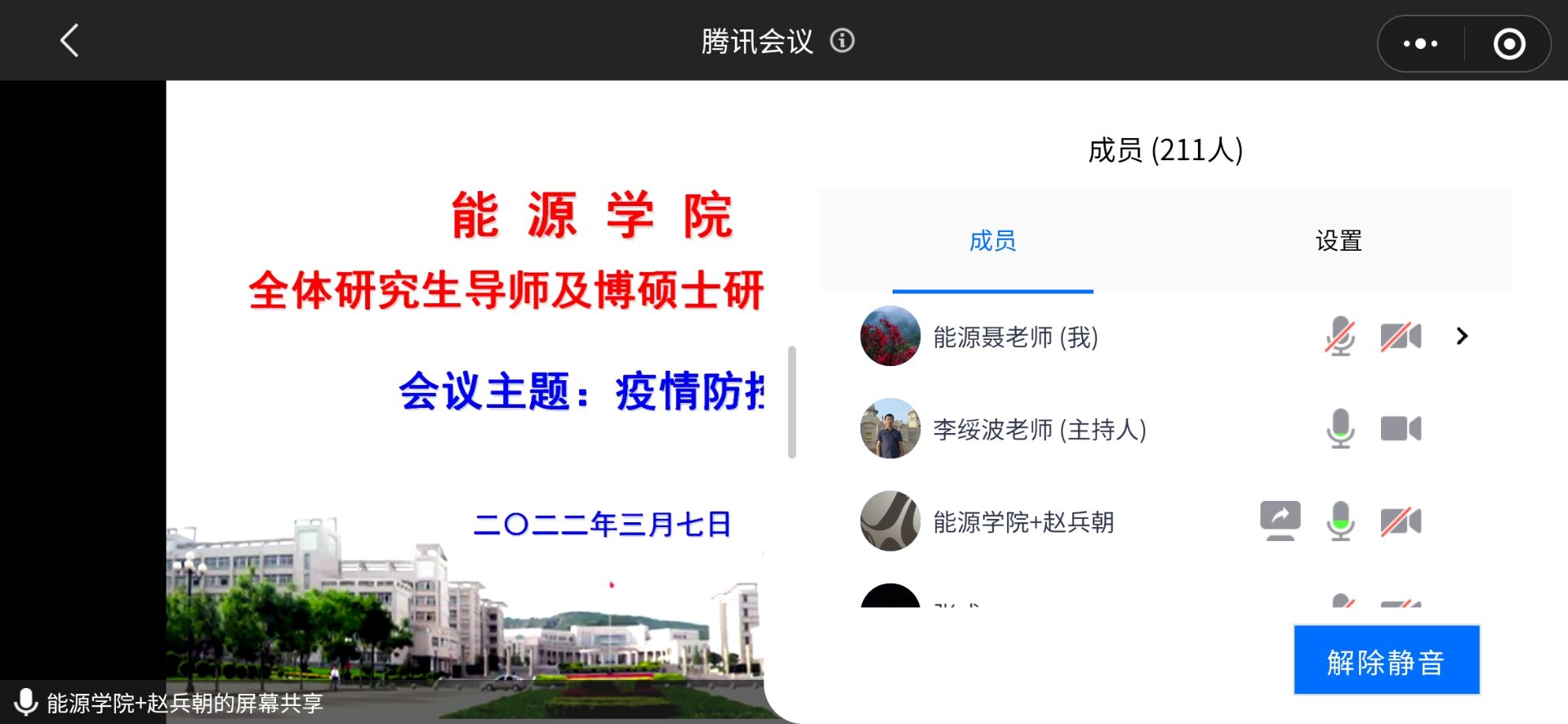 疫情就是命令,防控就是责任。西安科技大学能源学院研究生院于2022年3月7号组织全体研究生和导师进行线上疫情防控会议,在会议中,学院领导不仅多次叮咛大家增强预防意识,做好自身防护,确保身体健康,而且号召大家齐心协力做好疫情防控“守门员”,严密防控疫情,做到既严格管控,又温暖人心,“绝杀”疫情传播途径,自觉扛起使命担当,守护校园安宁!