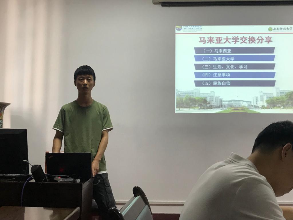 王润沛和马哲为同学们详细而生动地介绍了马来亚大学的交流生活经历;分享了他在马来西亚为期四月的学习生活经历;展示了他学习参观中的各项成果;总结了这次活动中的收获与经验;并鼓励同学们要多见见外面的世界。