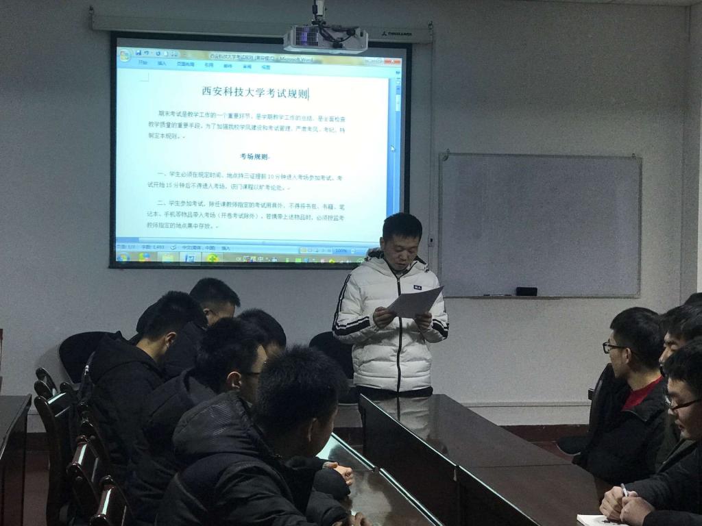 会上,同学们一起学习了《西安科技大学考试规则》、《西安科技大学考试管理工作细则(试行)》、《西安科技大学学生违纪处分规定》等相关文件,尤其对考试纪律及违纪处理进行了重点学习。希望同学们在接下来的考试中,不要抱有侥幸心理,端正考试态度。