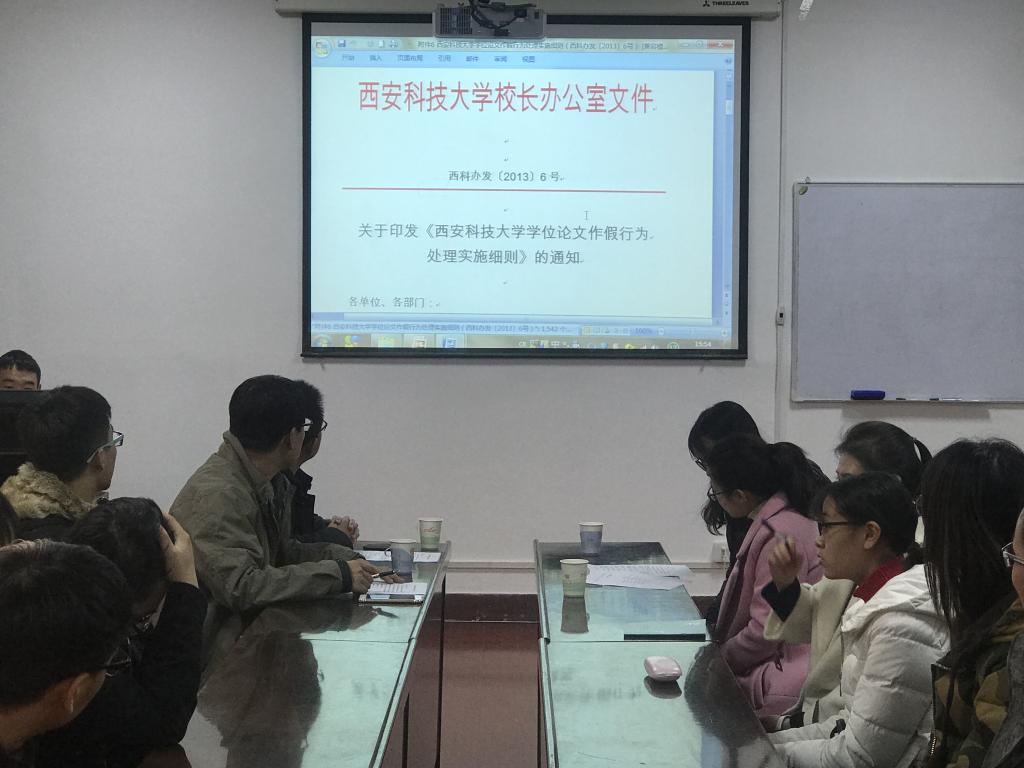 大会首先组织研究生《西安科技大学学术道德行为规范(试行)》、《西安科技大学学位论文作假行为处理实施细则》等8个有关文件。