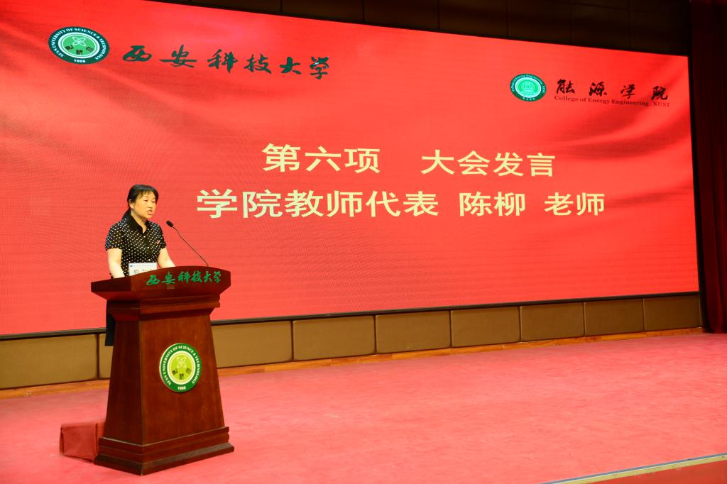 教师代表陈柳教授勉励同学们,人生的旅途中不在于你遇到什么困难,而在于你面对困难的态度,任何时候、任何情况下,西安科技大学能源学院永远是你们最坚强的后盾!