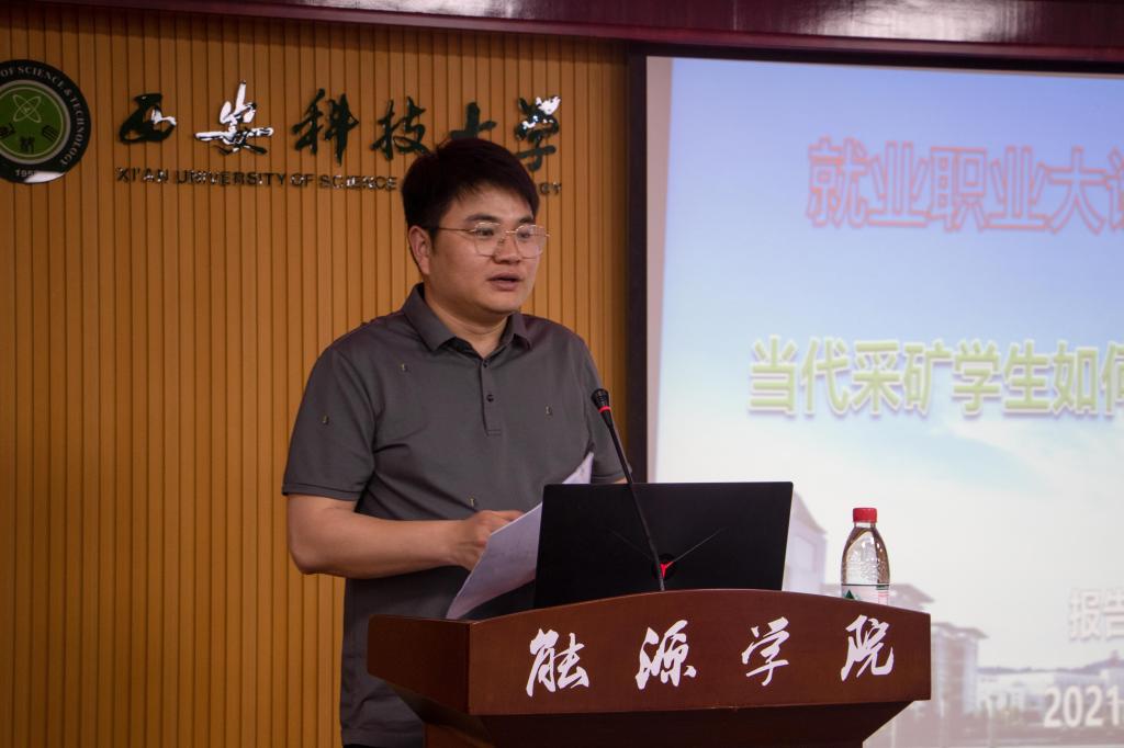 5月20日晚,能源学院采矿工程专业2008级校友、陕煤新型能源沣京公司副总经理郭峰在临潼校区骊山校园学院会议室做了题为“当代采矿学生如何尽快适应行业新特点”讲座。学院党委副书记李绥波、副院长解盘石、采矿系教师代表郎丁及采矿工程专业各年级本科生代表等100余人参加了讲座。讲座由学院毕业班辅导员吴蒸主持,