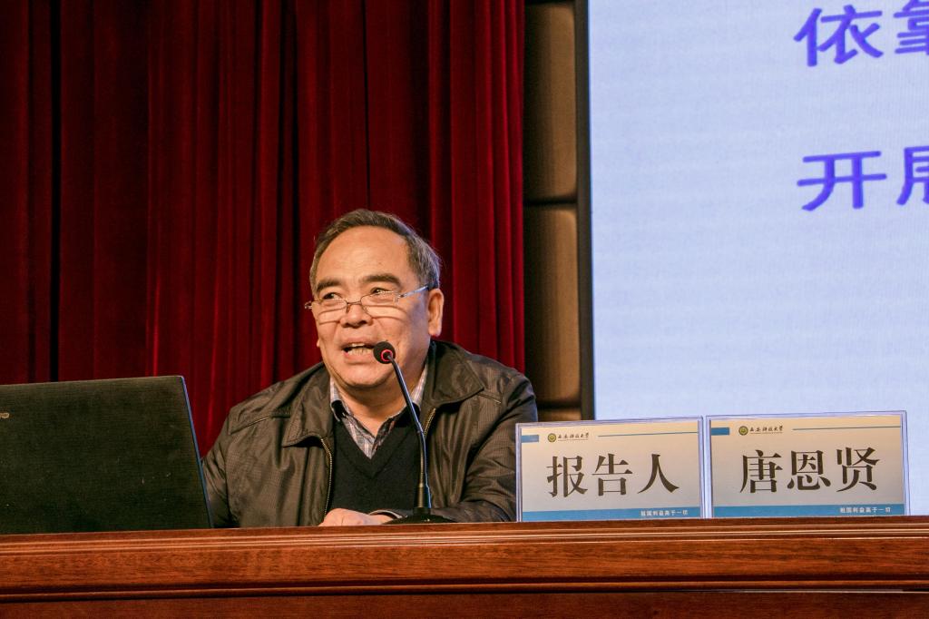 唐恩贤教授从煤炭在能源产业的重要地位讲起,介绍了国家对智能化矿井建设的政策支持,重点围绕煤矿智能化发展的必要性、我国智能化采煤的核心技术和目前需要解决的问题进行了讲解。唐恩贤教授从态度、见识、格局、延伸四个维度,结合自身学习工作经历勉励广大青年学子用心工作、细于观察、善于思考,扎实完成学业,增长自身见闻,努力为智能化矿山建设和发展贡献青春力量!在随后的互动环节中,唐恩贤教授一一解答了同学们提出的问题。