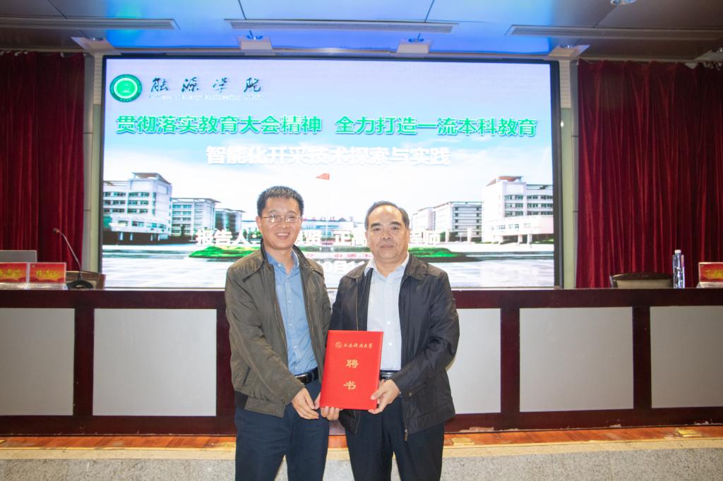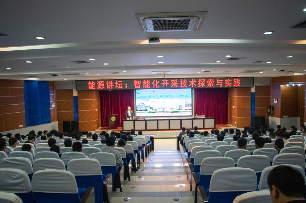 唐恩贤教授受聘西安科技大学客座教授和能源学院校外辅导员,院党委书记陈吉兰、副院长解盘石分别向唐恩贤颁发了聘书。唐恩贤教授随后做客“能源讲坛”,做了题为“智能化开采技术探索与实践”的主题报告,主题报告中强调了智能化开采是煤炭工业升级转型及技术革命的必经道路,向师生介绍黄陵矿业公司智能开采技术的应用现状。唐恩贤教授还与同学们共同思考今后智能化开采发展前景,畅想了5G技术与煤炭远程操控技术的结合,引发同学们热烈讨论。他鼓励同学们努力学习,尽早攻克科研难题,为祖国能源事业做出贡献。