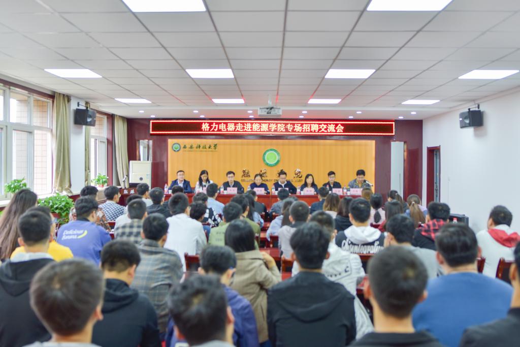 9月16日,珠海格力电器西科大校园专场招聘会在临潼校区能源学院会议室举行。珠海格力电器华中地区副总监李刚,西北分公司大项目经理朱亮、王鑫、段朋利,建筑环境与能源应用工程系党支部书记张进及专任教师陈柳、薛韩玲参加了招聘宣讲。宣讲会由院学工办主任、团委书记万超主持。