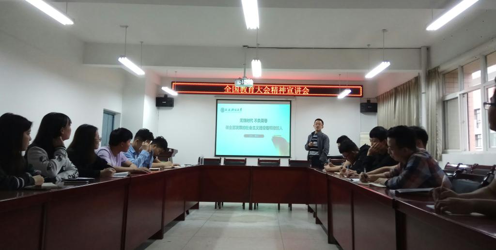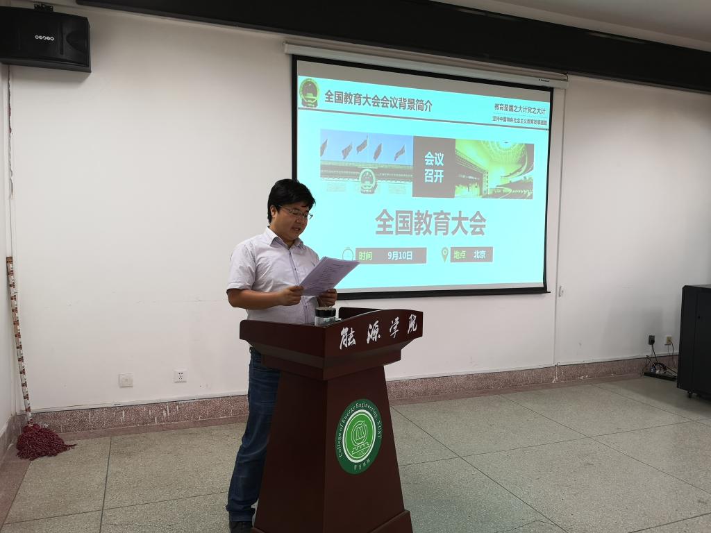 为深入学习全国教育大会精神,深刻领会习近平新时代中国特色社会主义思想和关于教育的论述,进一步落实立德树人的根本任务,能源学院于近期有计划、有组织地开展了学习全国教育大会精神宣讲会,学院全体学生聆听了宣讲。