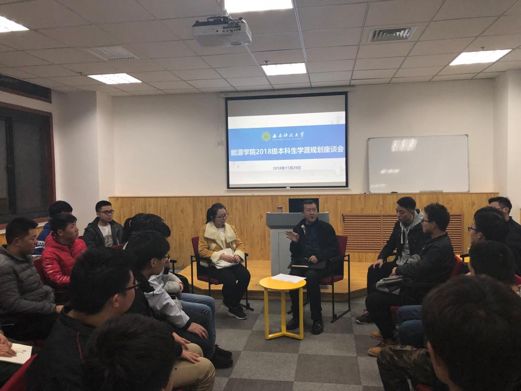 11月30日,能源学院在临潼校区图书馆智慧学习空间举行本科生生涯规划座谈会,学院院长、博士生导师柴敬教授、院团委书记万超及30名2018级本科生代表参加了座谈。