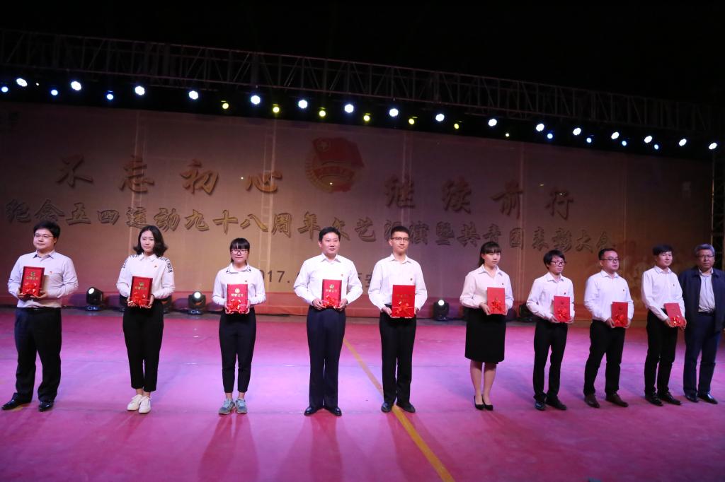 5月4日晚,西安科技大学纪念五四运动98周年文艺汇演暨共青团年度表彰大会在临潼校区明德广场举行。校党委书记刘德安、党委副书记李明、樊建武、副校长王贵荣、校长助理贺建峰,各单位、各部门党政主要负责人,各学院分管学生工作的负责人,分团委、团总支负责人及师生代表参加大会并观看演出。
