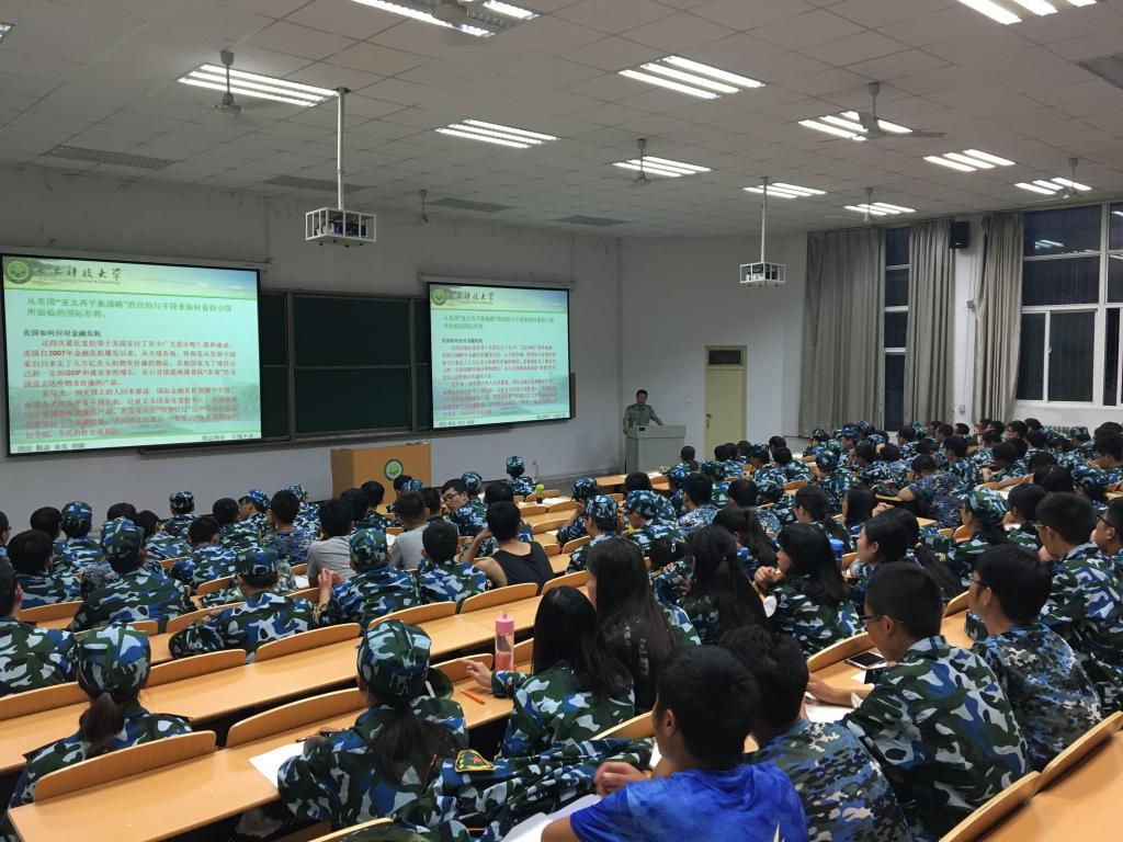 9月23日晚,学院在9-101举办2016级新生国际形势和国防教育活动。活动以观看9月18日央视《防务新观察》节目内容为引子,学院党委副书记高朕栋从美国“亚太再平衡战略”的险恶目的、中国南海问题以及近期发生的国际事件,为2016级新生讲了一堂国际形势分析及教育课。同时,高书记还结合新中国成立后的几场战争,为新生系统地阐明了国防建设的重要意义。最后,高书记激励2016级全体新同学努力提高科学本领,为实现中华民族伟大复兴的中国梦积蓄能量。