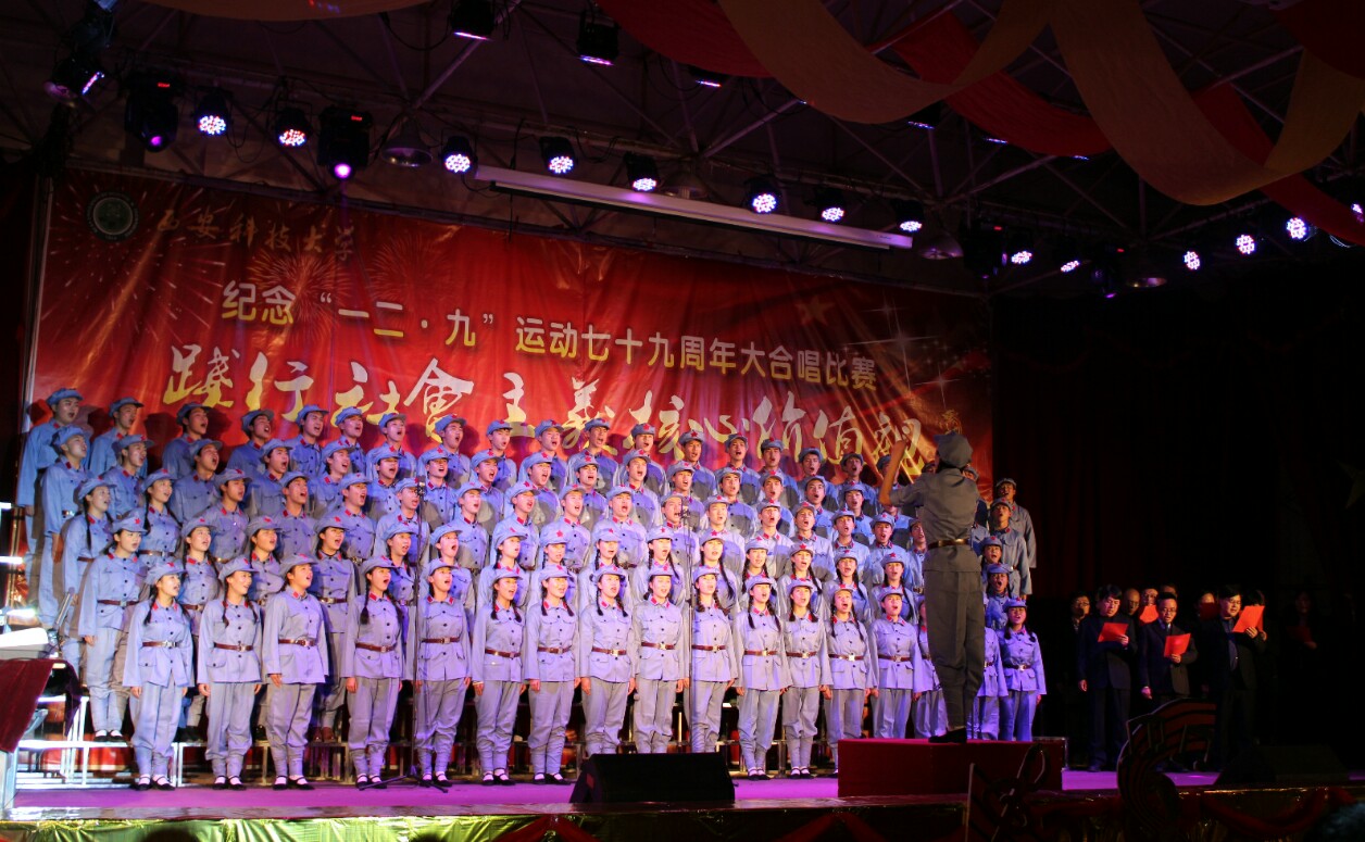 1935年12月9日,北平千名大中学生在中国共产党的领导下举行了抗日救国示威运动,掀起了全民抗日救国运动新高潮。参与对该事件的大合唱纪念活动,有利于在校大学生对历史的铭记与自身民族使命感的养成,培养其爱党爱民的良好品质。在以往的比赛中,我院学生均表现不俗,曾多次获得第一殊荣。这与他们平日艰苦训练所造就的高水准,高素质状态密不可分。本次比赛的表现是对能源风采的又一次展示,也希望能源学子在以后的比赛中取得更好的成绩。
