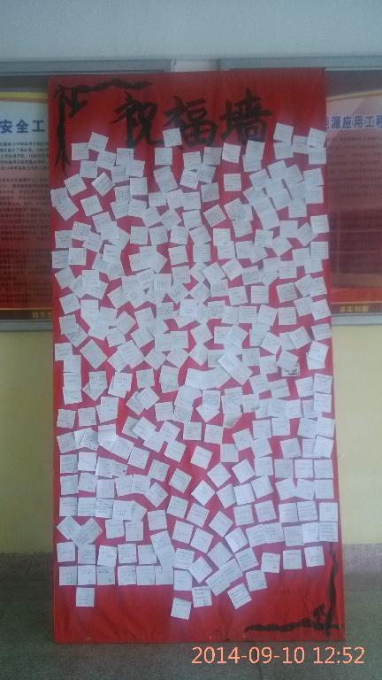 我院学生会以倡议书的形式向全院学生发出号召,希望广大同学将自己的“感恩之心、祝福之情”写在便签纸贴在学院楼“祝福墙”上或通过写邮件、发短信等形式向老师传递最真挚的祝福;希望同学们尊重老师的辛勤劳动,通过课前擦好黑板、课上认真听讲、课间为老师接一杯水等细节和行动表达对老师感谢。