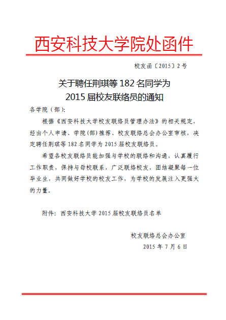 2015届毕业生校友联络大使