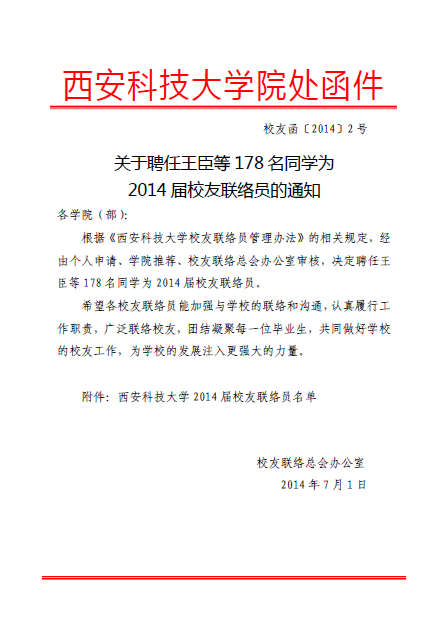 2014届毕业生校友联络大使
