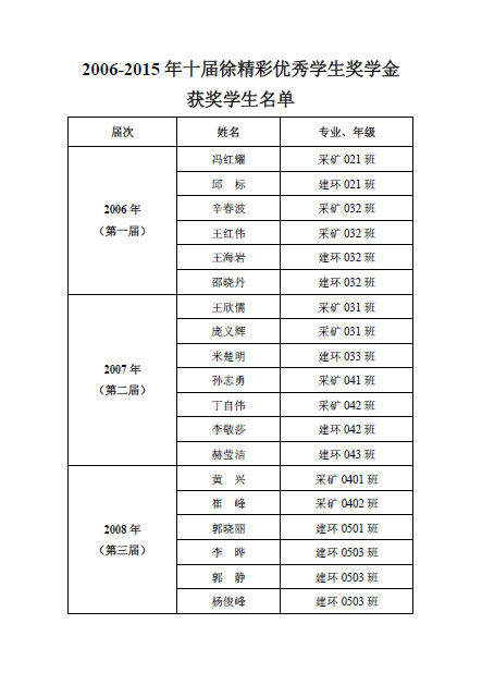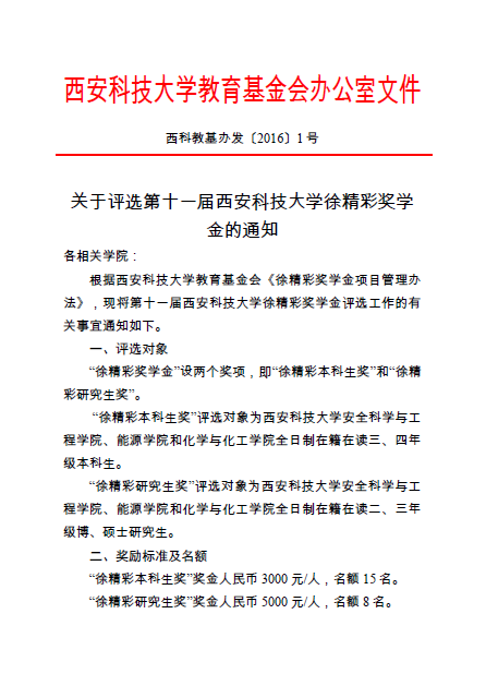 校友资助--2016年第十一届徐精彩奖学金