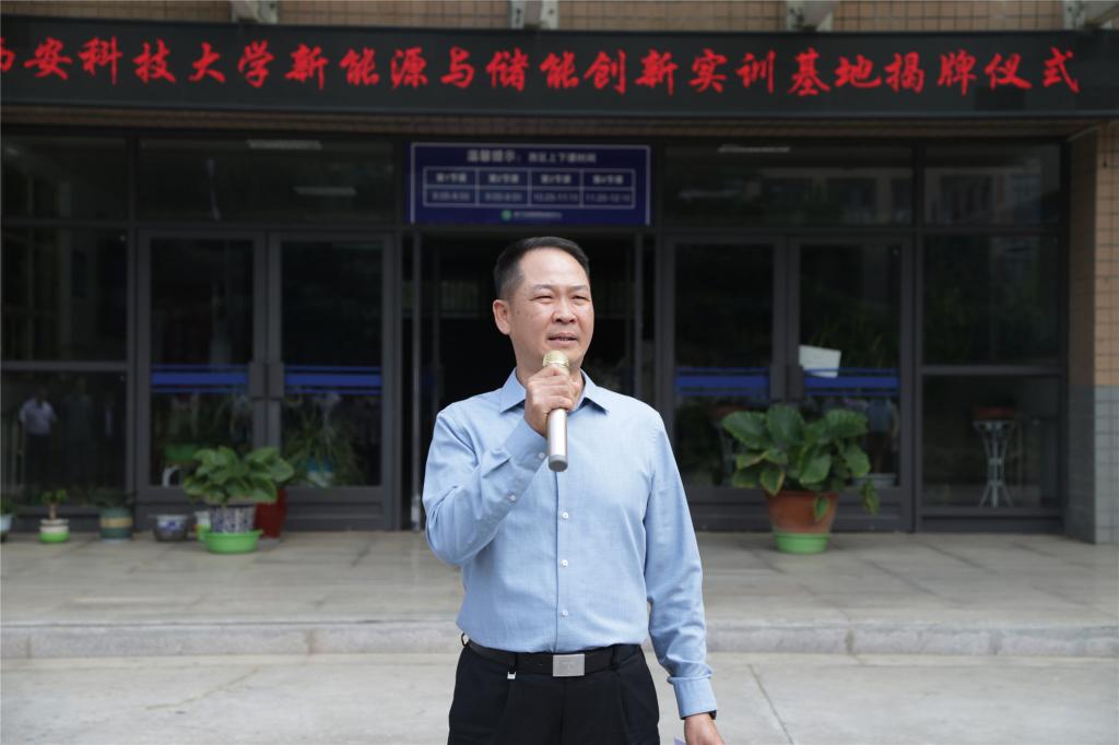 副校长曹明对新能源与储能创新实训基地的建设表示高度肯定,认为该基地对推动学校科研与实践结合、培养高素质人才具有重要意义。他表示,这一实训基地是学校迈向新能源领域的重要里程碑,将为同学们提供优质的教育资源和实践机会,对学校未来技术学院提供先进的实践教学场所,使学院在新能源与储能领域培养出更多优秀的技术人才,为学校在新能源技术领域的发展发挥重要作用。