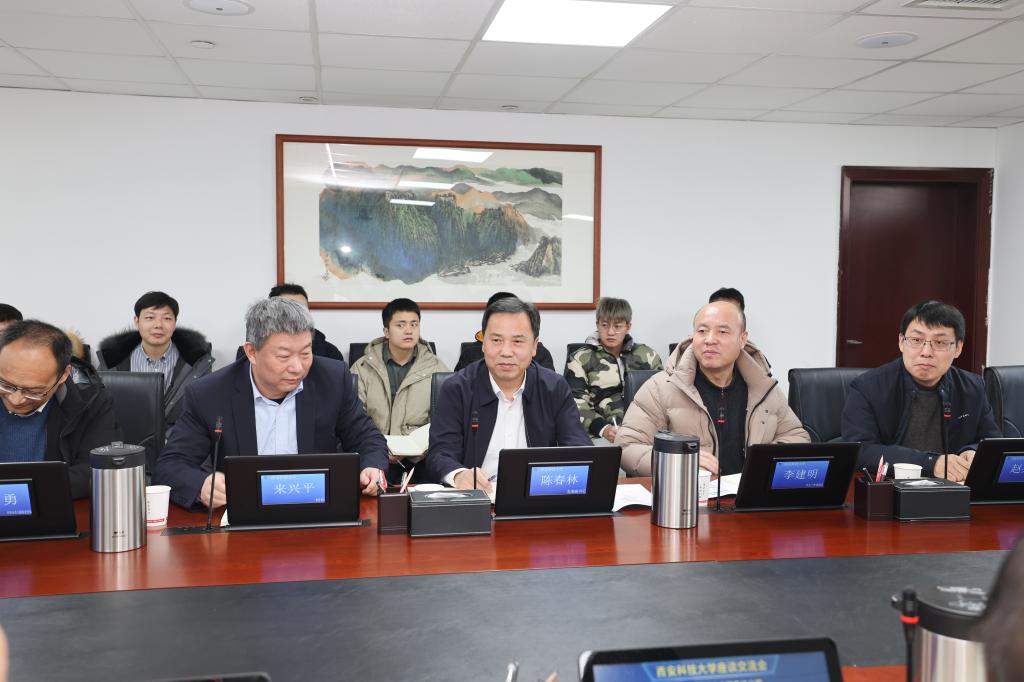 在与陕西延长石油矿业有限责任公司座谈交流时,来兴平教授向延长矿业公司长期以来对学校建设发展的大力支持表示感谢,详细介绍了“十四五”期间学校在学科建设、人才培养、科技创新、成果转化等方面情况,表示校企双方要进一步加强科研成果转化和产学研一体化合作,聚焦矿业公司高质量发展的卡脖子难点,在智能化快速掘进、超长工作面矿压防治、超高强度开采粉尘治理、富水煤层防治解危等领域持续开展点对点联合攻关,提升高校与企业协同创新效率,把学校技术成果转化为现实生产力,为陕西省高质量发展贡献力量。陈春林介绍了学校的办学历史和发展基本情况,对学校第十一次党代会主要精神和“十四五”发展规划做了解读和说明,希望校企双方保持沟通联系,进一步加强人才培养和科研方面的合作,取得更加突出的成果。