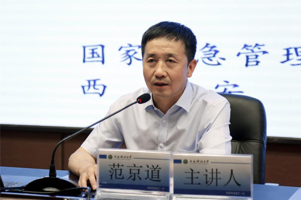 陕西延长石油集团副总经理、国家应急管理部智能化开采技术创新中心主任范京道在骊山校园煤炭科技中心一楼报告厅做了采矿工程智能开采特色班招生宣讲暨“国企领导上讲台”首场报告会。报告会前,范京道为我校图书馆捐赠100本个人专著《智能化无人综采技术》,图书馆负责人接受了捐赠,李明颁发了捐赠证书并致感谢辞,范京道做了《煤矿智能化无人开采新技术》的专题报告。同时对广大学生了提出了“家国情怀、志存高远、刻苦学习、文化修养、强身健魄”20字的殷切希望,希望大家贯彻落实习近平总书记在纪念五四运动100周年大会上的讲话精神,苦练内功,将来在改革开放和现代化建设的伟大实践中施展才华,做出一番感天动地的事业。