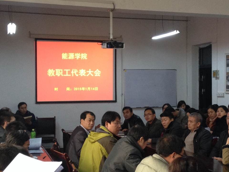 2015年1月14日下午,能源学院2015年第一次教职工代表大会在雁塔校区能源学院会议室召开。能源学院领导班子、院工会全体委员、学院在校教职工参加了本次会议。大会讨论了关于能源学院2015-2017年度《岗位聘用和绩效工资实施办法(讨论稿)》文件。