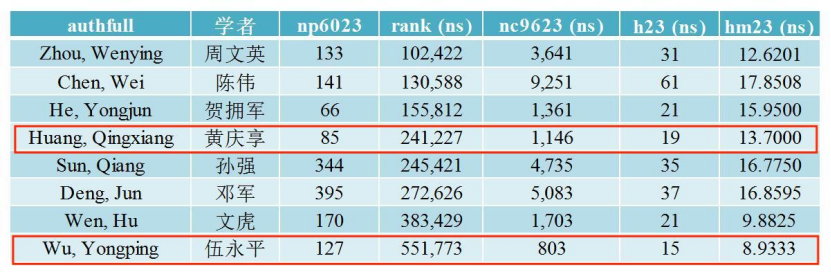 黄庆享、伍永平等2位学者入选“终身科学影响力榜单”。