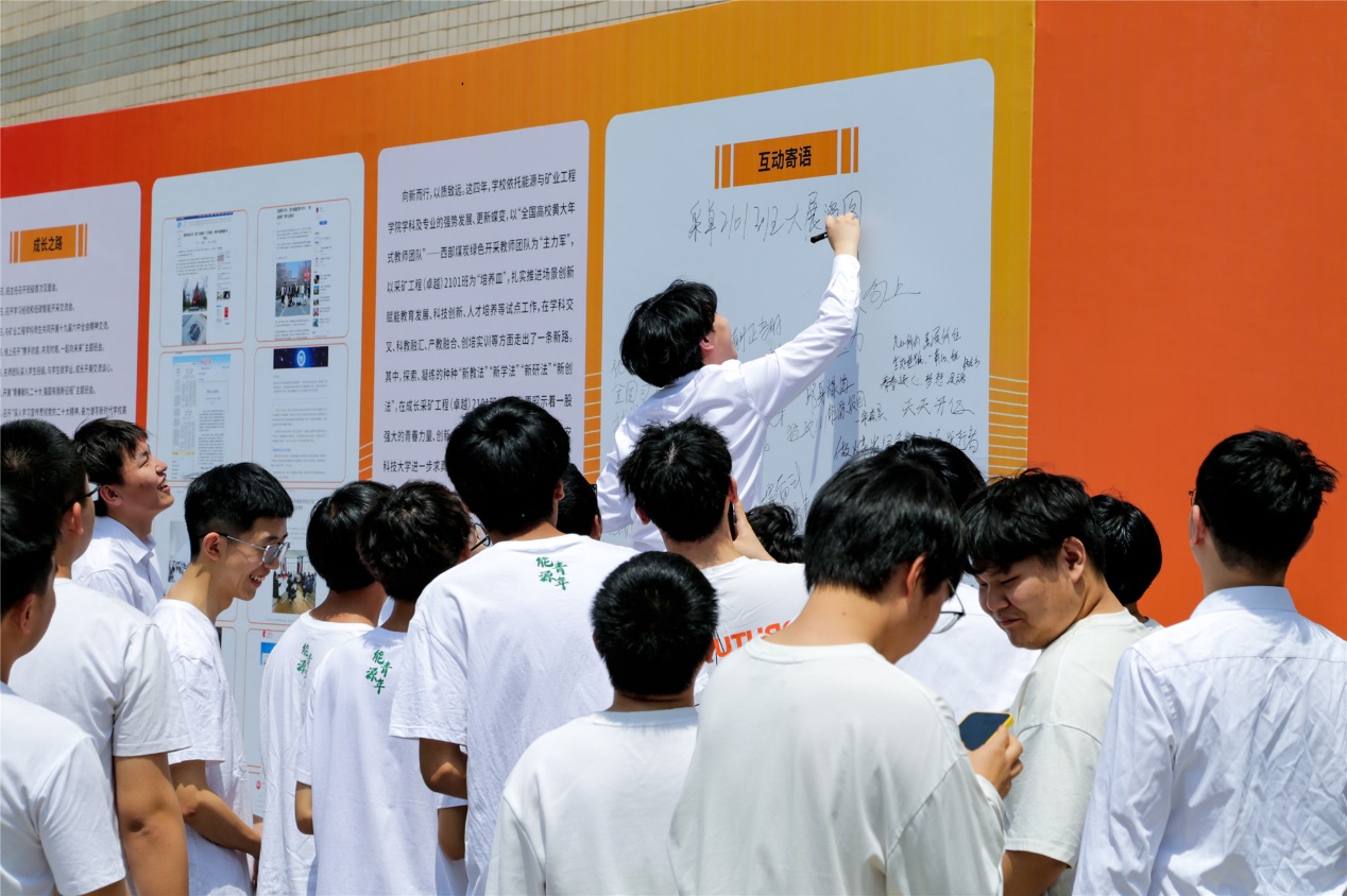 据悉,“青春之问,奋斗作答—采卓2101班成长之路”场景创新主题展览由党委宣传部、科技处、能源与矿业工程学院、新质生产力研究中心联合策展,以该班四年奋斗的青春答卷为主线,共设思政引领、名师护航、青春引路、奋斗作答、未来在望等五个场景,通过图文结合的形式,全面展示班级党建、思政、教学、科创、就业、宣传等各方面成绩,以点带面构画学校以场景创新赋能高质量发展的探索实践。
