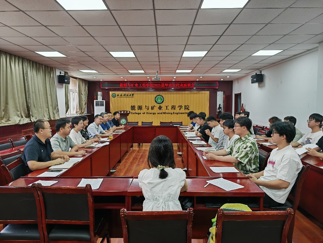 6月20日上午,学院在临潼校区骊山校园会议室召开了2025届毕业生代表座谈会。院党委书记陈吉兰,院长崔峰,党委副书记党雪,系主任代表郇超,采矿系教师代表张沛、肖双双、顾合龙,毕业班辅导员吴蒸和2025届本科毕业生代表共计30人齐聚一堂,共话成长与未来。座谈会由党雪主持。