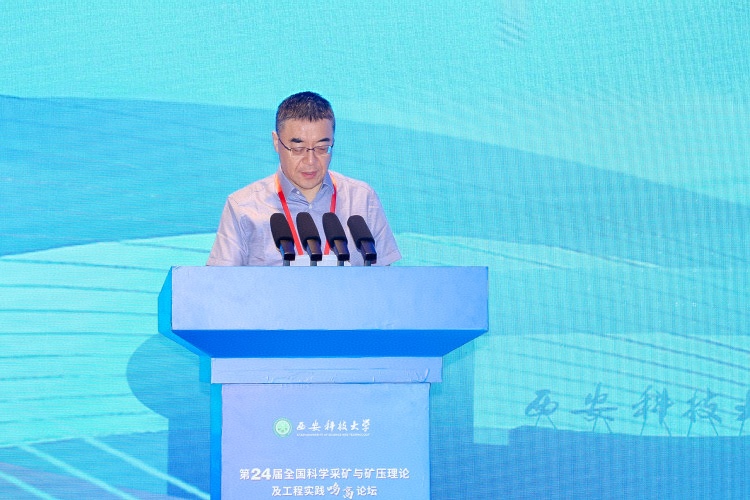 刘峰在讲话中强调,参会专家学者应以本届“鸣高论坛”为契机,联合全国相关学术机构与高等院校,深化产学研协同,坚持走以创新为引领的高质量发展道路。他希望各兄弟高校充分发挥人才培养优势,夯实人才根基,深入拓展深部开采、矿山压力控制等领域的研究,在新方法、新技术的助力下,共同打造科学采矿体系,构建高效、绿色、智能的现代化采矿模式,加速前沿理论的实践应用,为国家能源安全与矿业高质量发展贡献新的更大力量。