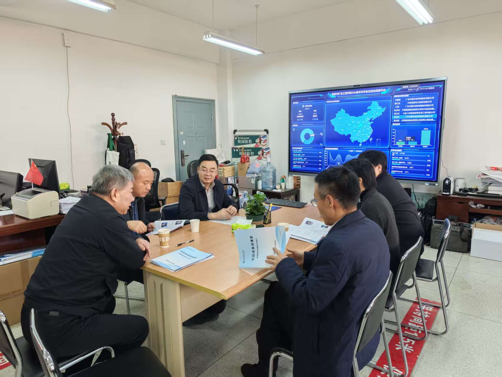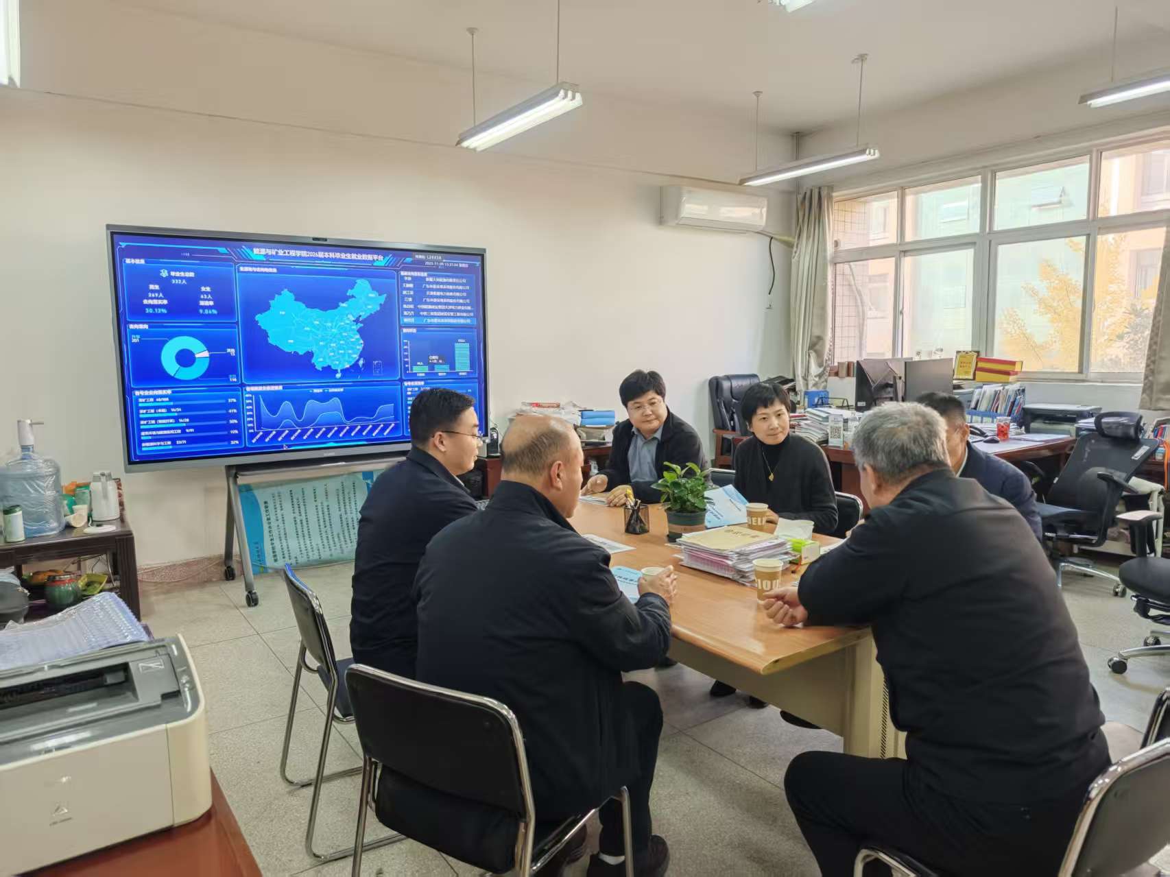 11月9日,校党委书记来兴平带队赴能源与矿业工程学院检查指导审核评估终期检查准备工作并实地考察2026届本科毕业生就业数据可视化平台建设。副校长程卫星,党办、校办、学工部主要负责人参加了考察。