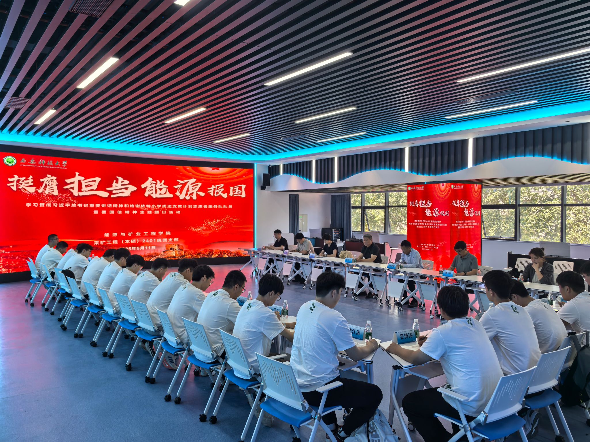 5月11日上午,班主任、校党委书记来兴平深入采矿工程2024级创新班,指导开展“挺膺担当、能源报国”——学习贯彻习近平总书记重要讲话精神和给谢依特小学戍边支教西部计划志愿者服务队队员重要回信精神主题团日活动。副校长程卫星,能源与矿业工程学院、未来技术学院相关负责人,博士研究生代表,带班辅导员,采矿工程2024级创新班团支部全体青年学生参加了活动。活动由能源与矿业工程学院团委负责人主持。活动学习了《求是》...